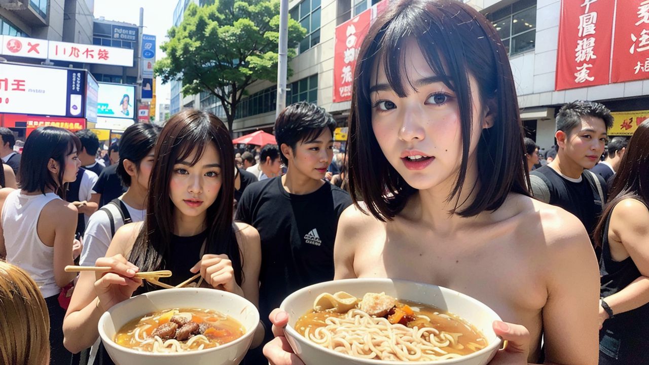 愛知県 愛西市には、全裸で、豚骨しょうゆラーメン (麺のかたさ 針金) を食べる変態女性がいる、とのこと。
